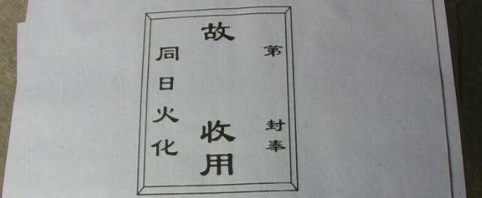 第四列:在“孝”字之后写送包人自己与收包人的关系(自称)及姓名,这与第三列一样是比较复杂,不同关系不同辈分的称呼是不同的(具体写法见附表)。第五列:这列的写法比较简单,把具体烧包那天的农历年月日写清楚就行。补充一点,就是在包的反面,需要在封口处写上一较明显的“封”字表示密封,意思是此包经送包人打上封条,非收包人不得拆开,这个“封”字本来是用印章盖的,但一般人家都没有印章就用毛笔或软笔写上,如果封皮上本身有“封”字的就不用麻烦了。