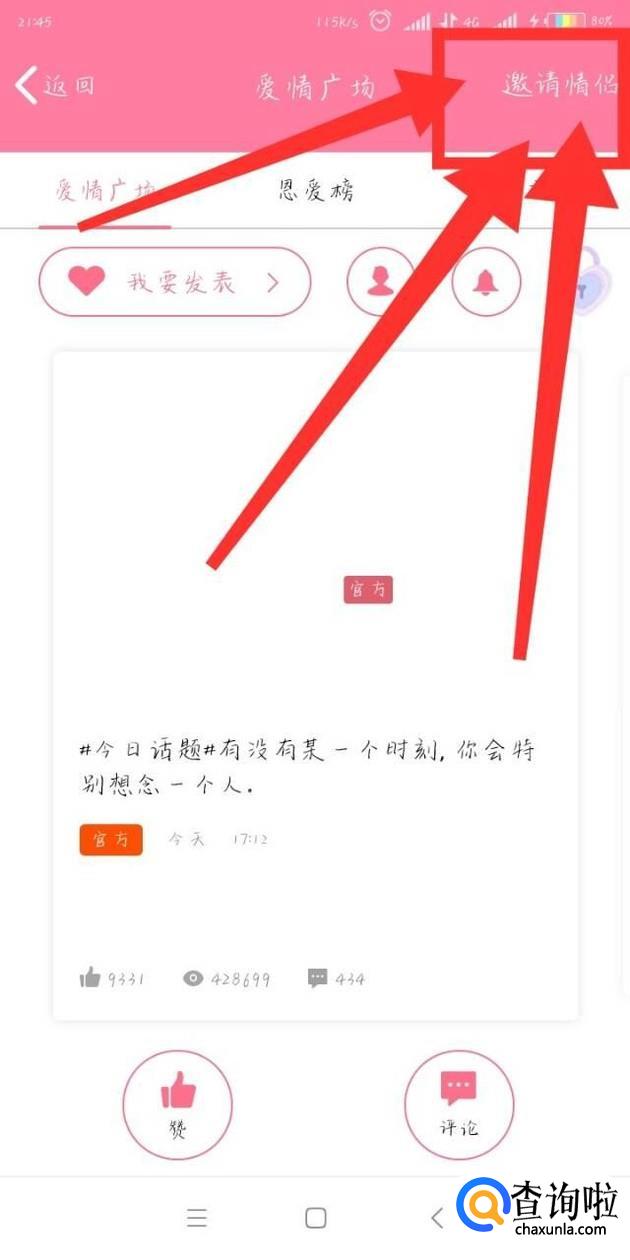 然后就可以邀请心仪的他(她)了,对方同意后,就能形成情侣空间啦。