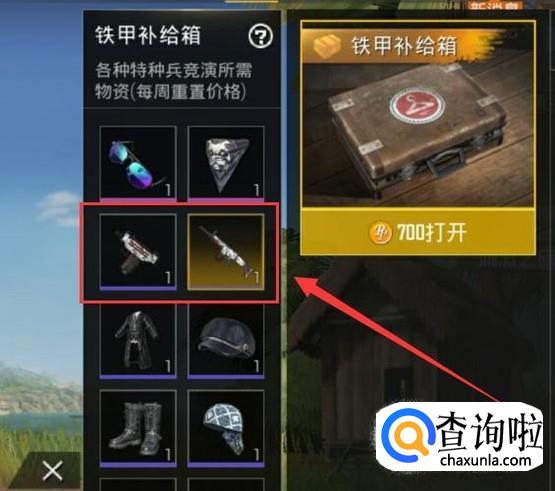 点击图示位置打开补给箱,就有一定的几率开出枪的皮肤,如图所示。