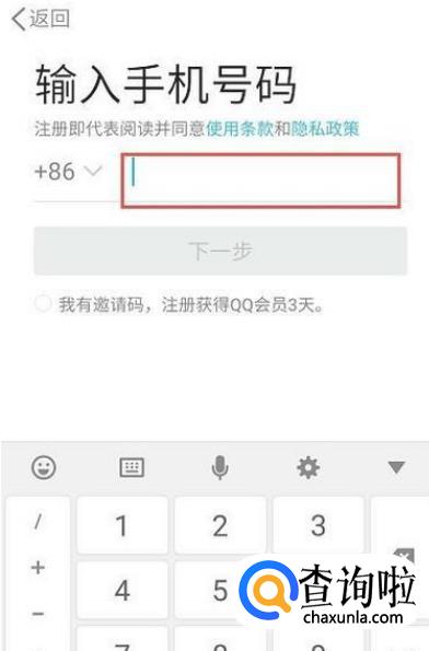没有qq账号,就点击新用户注册,输入手机号码进行注册就完成了。
