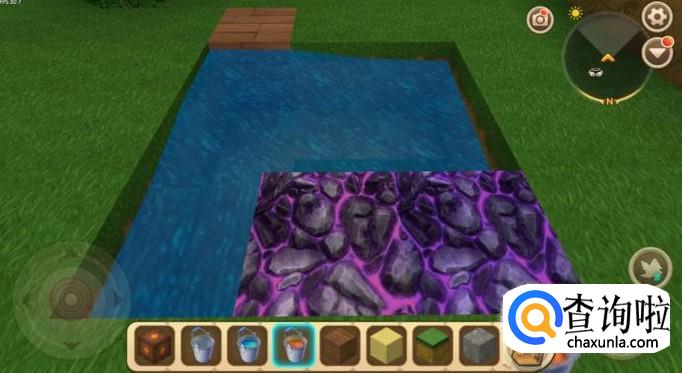 然后挖一个坑,先把水倒入这个坑中,再向水中倒入岩浆,这样就能形成黑晶石了。