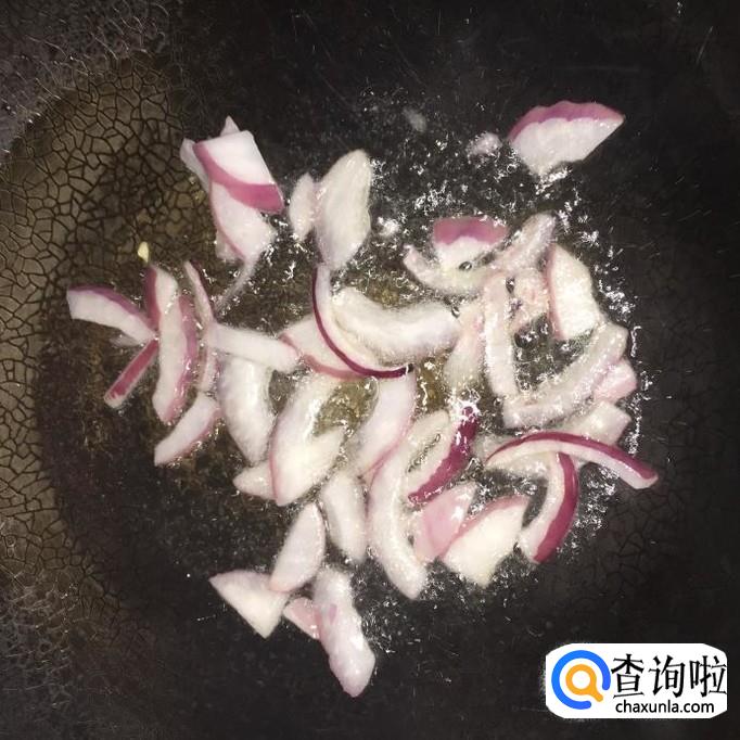 换炒锅,锅里加入适量的食用油,待油温升高后,将洋葱先下入锅里炒香,炒至颜色略变白色;