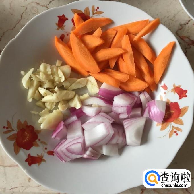 取半根胡萝卜,将胡萝卜去皮,洗净,切成小片;