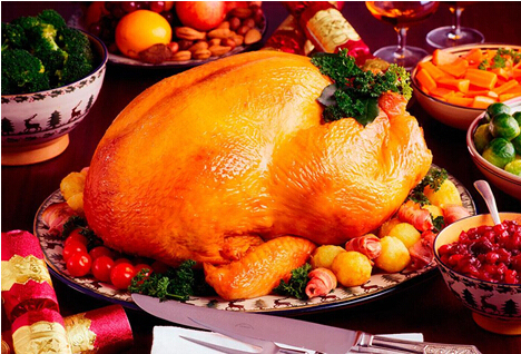 据说在一六二零年的圣诞节,大批来自英国的移民抵达美洲大陆的朴里茅斯山。当时物产贫乏只有满山的火鸡,于是把火鸡作为过节的主菜,之后就形成了圣诞节吃火鸡的风俗。