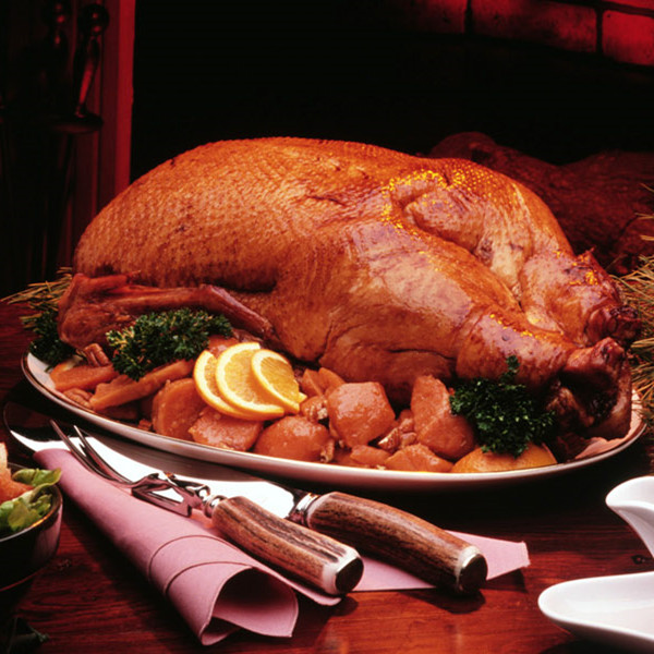 美国人吃火鸡的习俗是将火鸡的腹内装填各种材料,放入烤箱内烤熟。等烤熟后将整只火鸡端上桌,再用刀叉把烤好的火鸡分切一起享用。换句话说,他们吃的是“全鸡”。至于为什么不分好再端上桌?这大概就像我们在大年夜吃鱼,不会用鱼片而用全鱼上桌是一样的道理。不但兼顾了菜色的美观和视觉的丰富性。同时,也有全家人团聚在一起的享用大餐的象征。