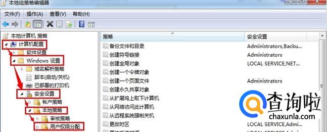 以此点击windows设置-安全设置-本地策略-用户权限分配。