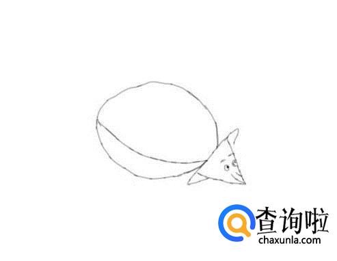在头部的后面画出甲龙宝宝的身体和肚子,如图所示: