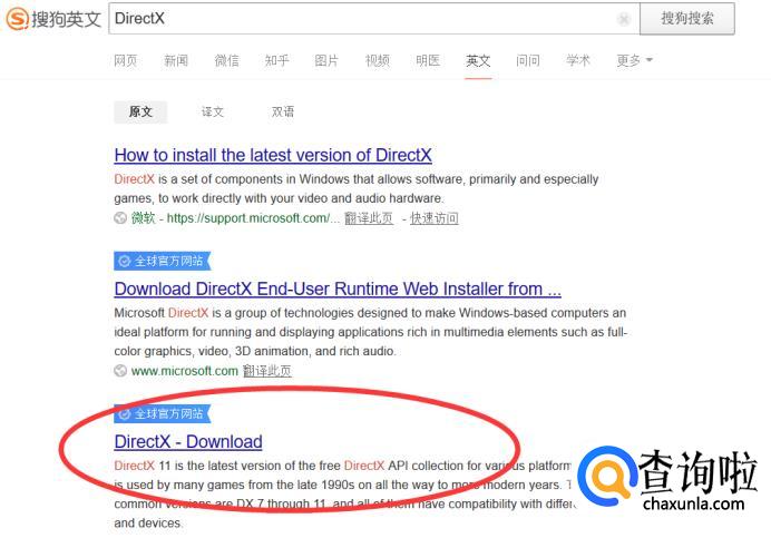我们搜索DirectX,进入官网下载并安装。