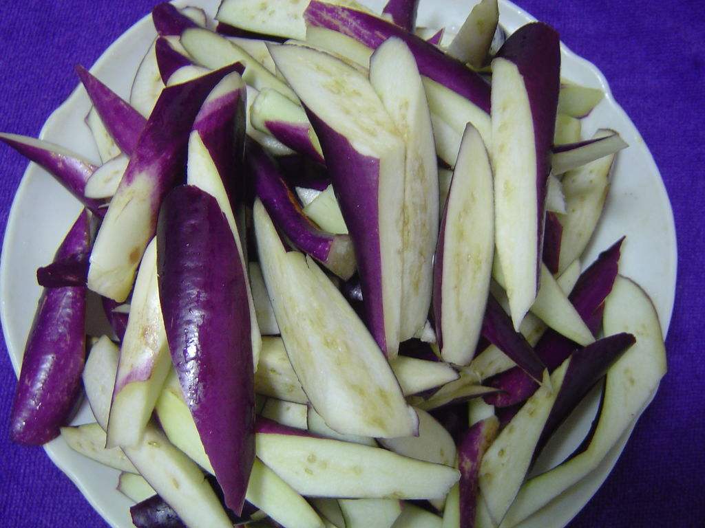 茄子切开后是白色或淡黄色的,靠皮的部分还有一点绿,可是暴露在空气中一会儿就会变黑,烹调以后也难保原来清爽的颜色。许多中老年人甚至认为,茄子炒后必然变黑,其实不然。只要烹调的方法得当,茄子烹调之后仍然可以保持淡黄或淡绿的颜色,口感也格外柔嫩滋润。