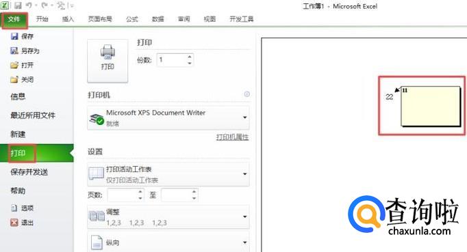 之后我们点击文件,然后点击打印,我们可以看到右边的预览中已经显示批注了,我们也就可以打印了。