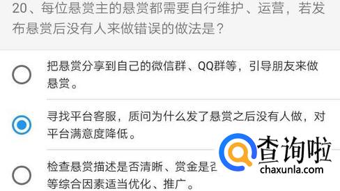 (20)每位悬赏主的悬赏都需要自行维护、运营、若发布悬赏后没有人来做错误的做法是?