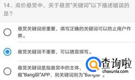 (14)高价悬赏中,关于悬赏“关键词”一下描述错误的是?