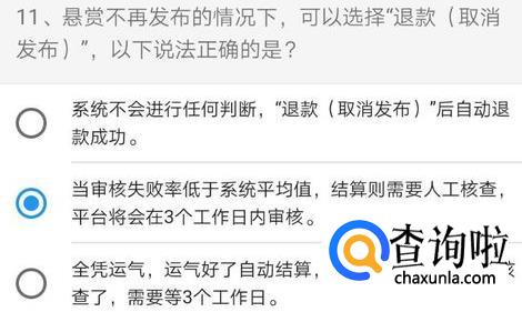 (11)悬赏不再发布的情况下,可以选择“退款(取消发布)”,以下说法正确的是?