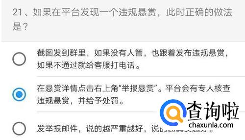 (21)如果在平台发现一个违规悬赏,此时正确的做法是?