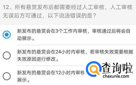 (12)所有悬赏发布后都需要经过人工审核,人工审核无误后方可通过,以下说法错误的是?