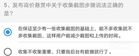 (5)发布高价悬赏中关于收集截图步骤说法正确的是?