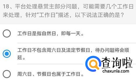 (18)平台处理悬赏主部分问题,可能需要几个工作日来处理,针对“工作日”描述,以下说法正确的是?