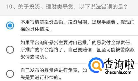 (10)关于投资、理财类悬赏,以下说法错误的是?
