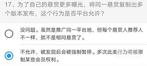 (17)为了自己的悬赏更多曝光,将同一悬赏复制出多个版本发布,这个行为是否平台允许?