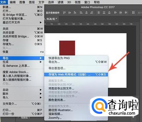 文件打开之后,在上方选择“文件-导出-存储为web所用格式(旧版)”
