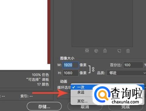 点选GIF格式之后,在下方“循环选项”中,要将循环选择为“永远”,最后进行存储即可完成操作了。