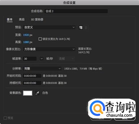 打开电脑中的AE软件,先创建一个合成,一般来说帧数我们都是设置30f/s。