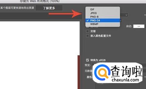 在存储为web所用格式中,我们将格式选择为“GIF”