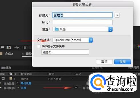 在渲染队列中,我们可以看到一个“输出到”选项,在该选项下文件格式只能够选择.mov,没有别的进行选择。