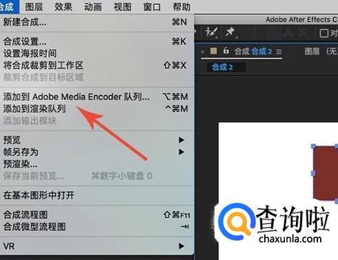 制作完成之后需要将合成导出,选择“合成-添加到渲染队列”