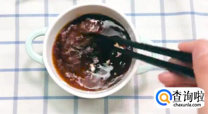 准备一个空碗,在里面加入生抽、老抽、蚝油和适量清水,再倒入淀粉和少许盐,一起搅拌均匀。