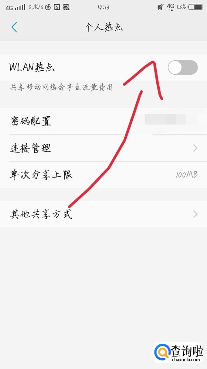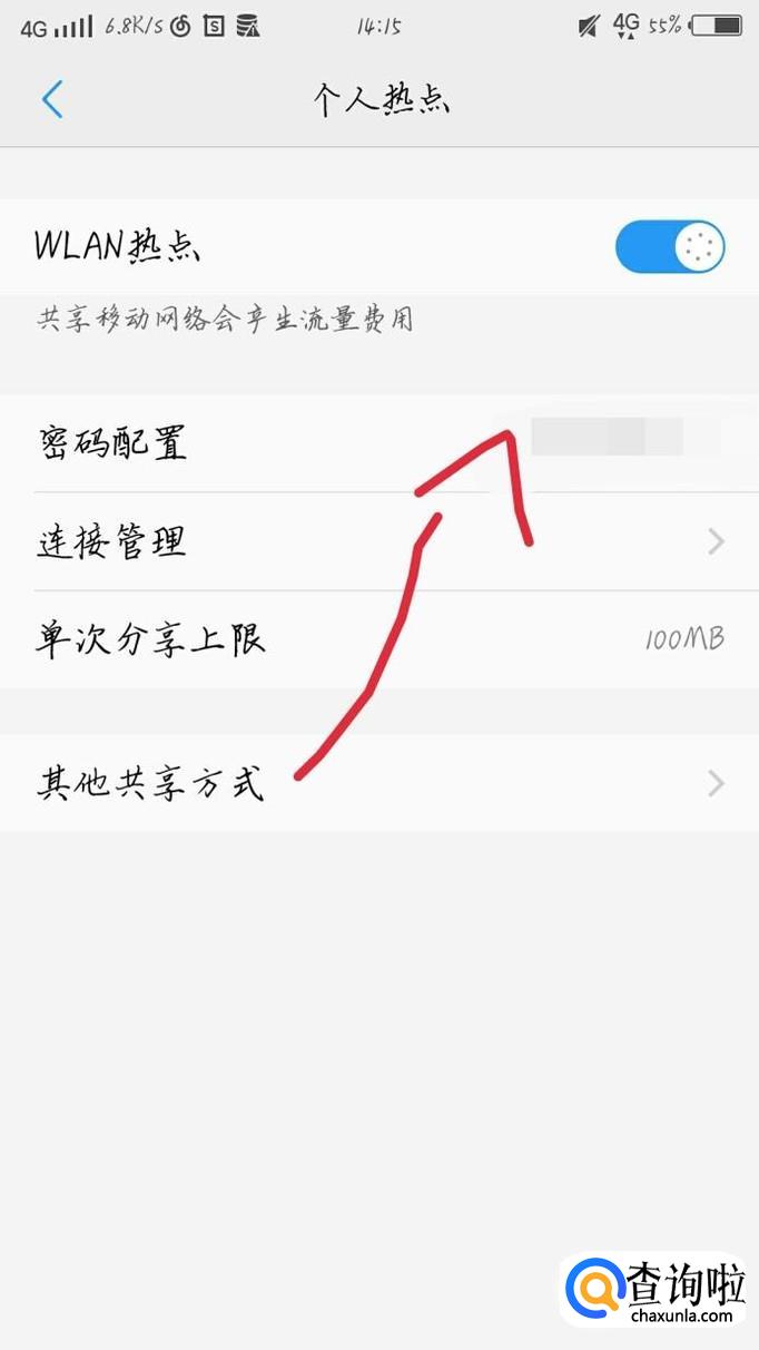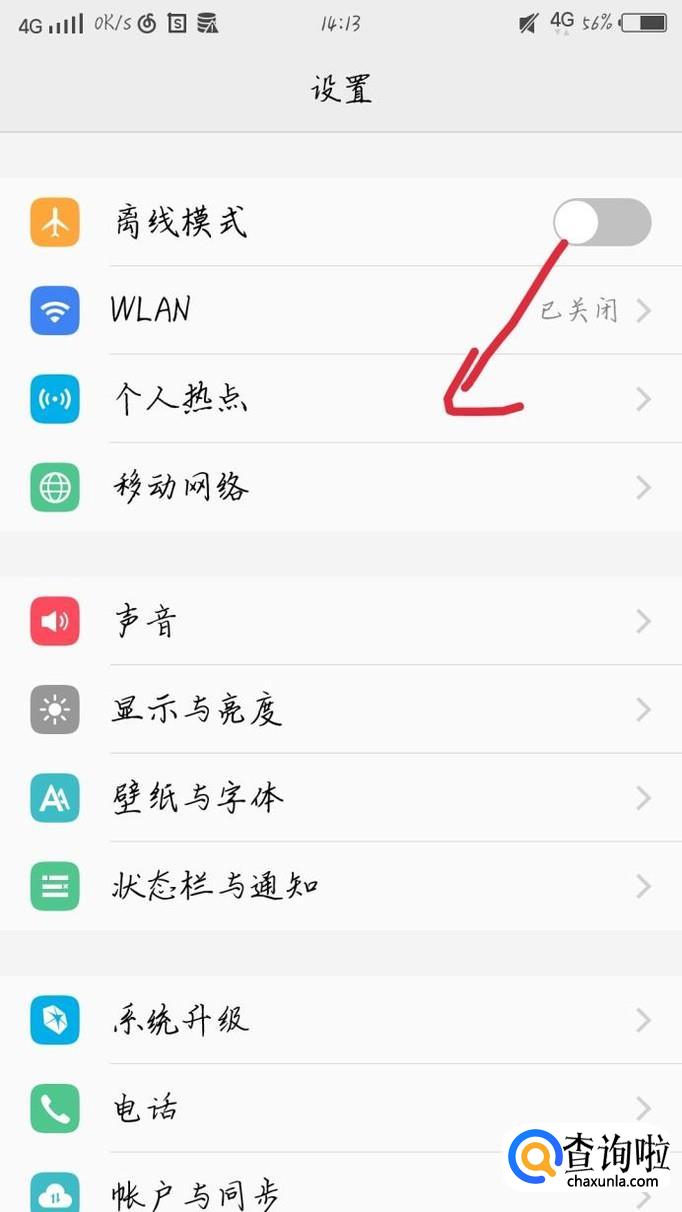 会出现一个新的界面,如图1所示。点击“WLAN热点”这个选项,如图2箭头所示。这个时候你朋友的手机就变成了一个流量源。
