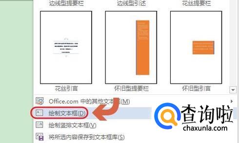 然后依次点击工具栏中的“插入”-“文本框”,点击文本框以后会弹出多种内置文本框格式,如图三;