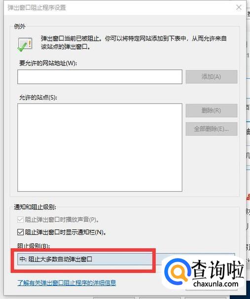 可以选择阻止级别。