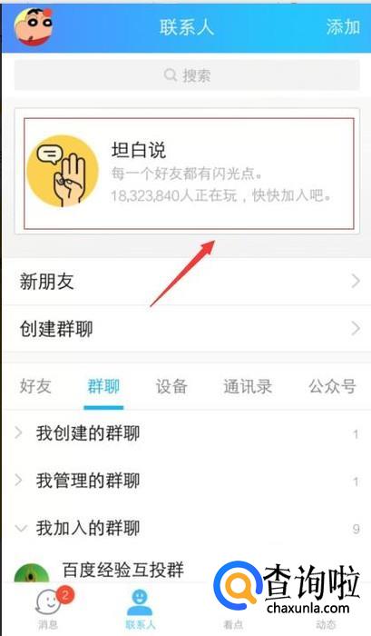 手机qq中的坦白说是手机qq新增加功能之一,我们可以给指定qq好友发送坦白说,下面给大家介绍一下操作;