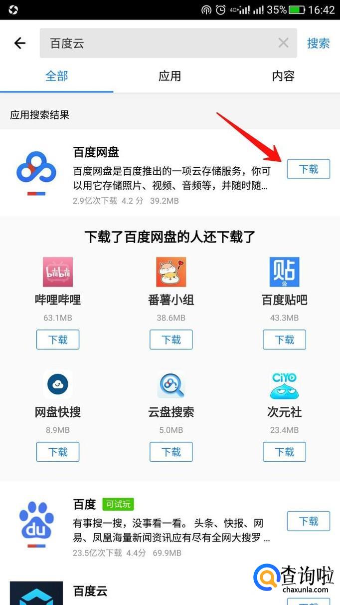 首先打开自己的应用商场,下载百度网盘。