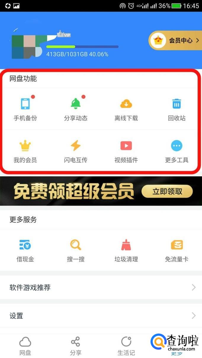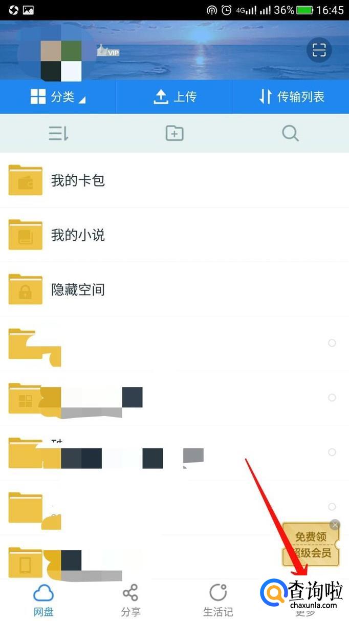 最后进入自己的个人中心,便可以查看自己的百度网盘了。