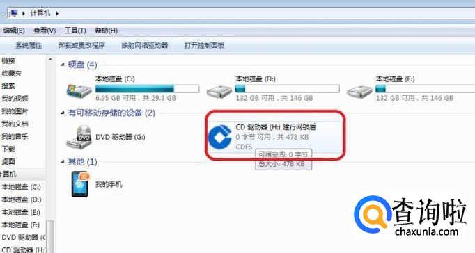 在电脑USB接口上插入U盾,打开“我的电脑”,双击它的图标安装。