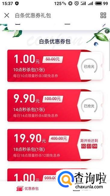 进入白条优惠券礼包界面,找到想要购买的提额白条优惠券进入。