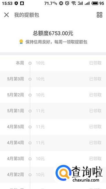 此外,除了购买白条优惠券提额包之外,要想提额的话还可以通过每周的提额包来进行操作,但是....提额的数量可就是太少了。