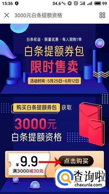 进入提额资格活动介绍界面,查看活动介绍,点击下方“立即购买”
