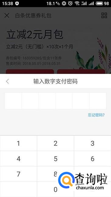 点击确认支付后弹框提示输入数字支付密码,输入个人支付密码进行验证,验证通过后即可成功购买。