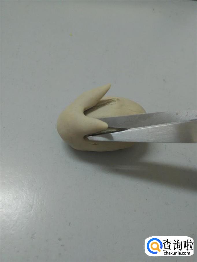 把橡皮泥捏成椭圆形,然后用剪刀剪出一只小兔子,下面就教大家捏小兔子的方法。
