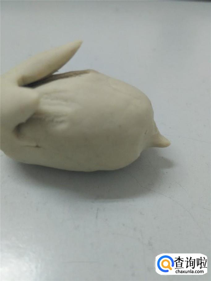用手在椭圆形的右侧捏出一个小尖来,当作兔子的尾巴。