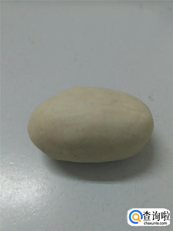 把白色的橡皮泥搓成椭圆形,就像一块鹅卵石一样。