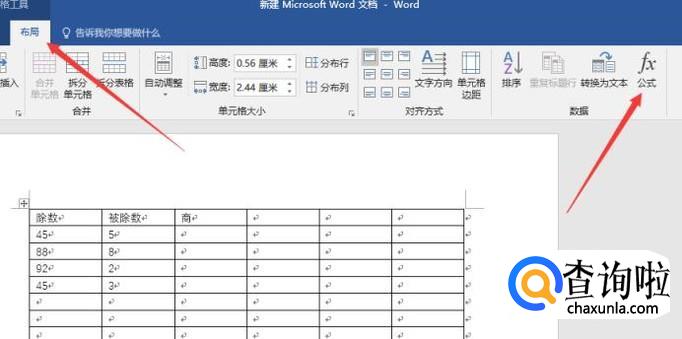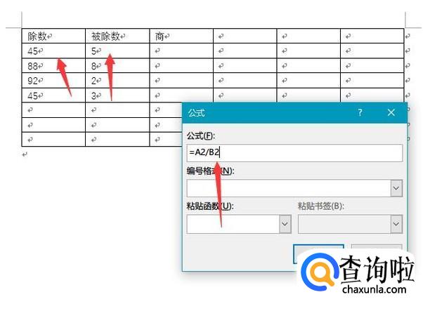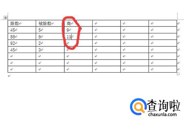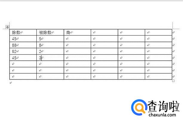 打开word文档,然后在文档中输入表格,接着将自己想要计算的数字输入进去,分别为除数、被除数和商,这样才能进行计算。
