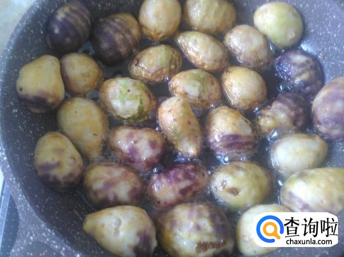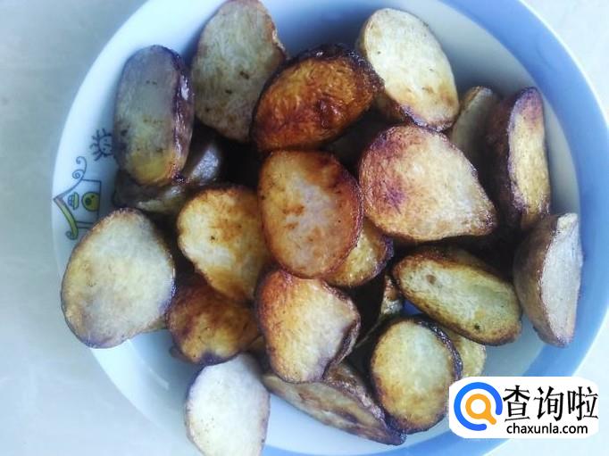 炸到薯子切口那面变焦黄色大概7分钟左右熄火,然后把薯子铲上碟子。【薯子已经炸的很松香了】