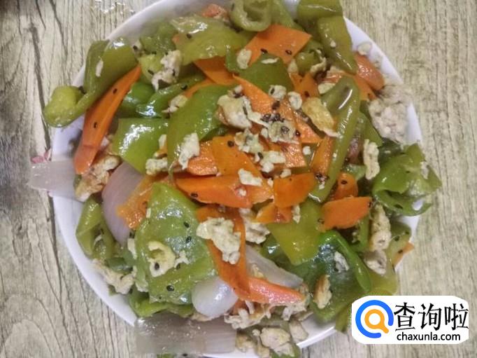 首先处理好食材,先炒两个鸡蛋,盛出备用,再炒青椒,也可以根据自己的喜好搭点配菜,临出锅之前倒入炒好的鸡蛋,就可以出锅了。