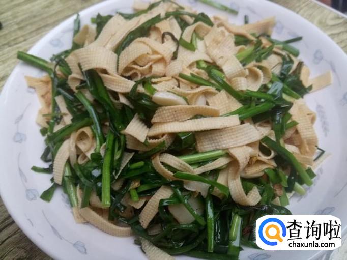 处理好食材,先将韭菜入锅,大火煸炒,再放入豆皮,最后进行调味,就可以出锅了,因为这两种食材不宜炒的时间太长,所以5分钟基本就可以做好。