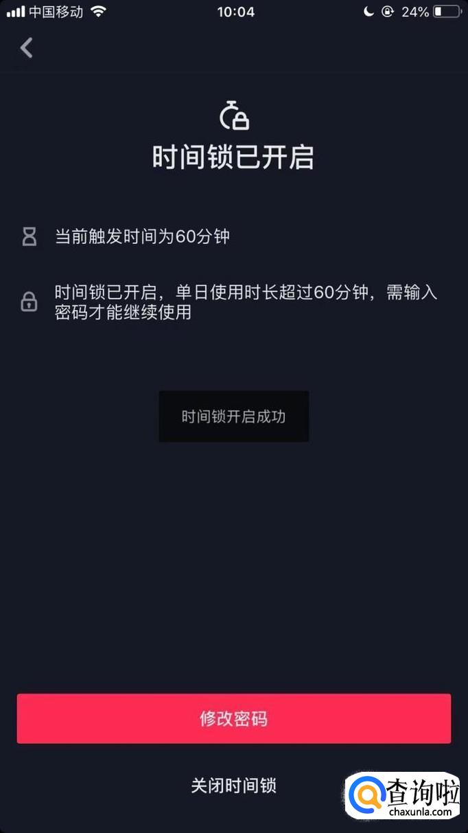 通过以上操作,我们就成功开启了抖音的时间锁功能了。