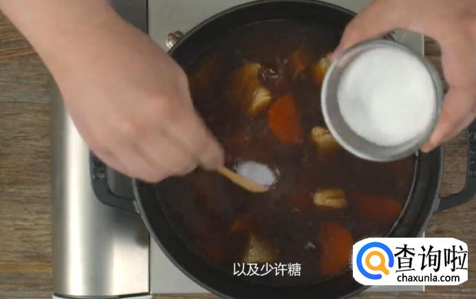 加入番茄沙司、生抽、老抽以及少许糖,中小火慢炖2小时。